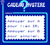 Cette option est disponible dès le début de l'aventure.Cependant, aucun cadeau mystère n'a été distribué via sans fil local et via infrarouge dans cette génération.