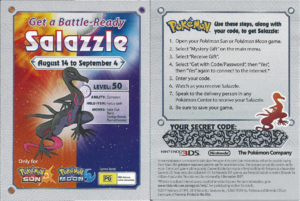 Il s'agit d'une distribution via un code universel fonctionnant sur tous les jeux quel que soit leur zonage, permettant à chacun d'obtenir ces quatre méga-gemmes. Elles avaient déjà fait l'objet des récompenses à la compétition Coupe Faiblesse.| Pharampite, Altarite, Latiosite et Latiasite | ||