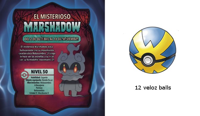Ceux d'entre vous qui achèteront la version téléchargeable de Pokémon Ultra-Soleil ou Pokémon Ultra-Lune avant le 10 janvier 2018 recevront un code individuel permettant d'obtenir 12 Rapide Balls dans ces mêmes jeux. Il est probable que les codes soient disponibles sur le reçu du téléchargement du jeu, de la même façon que celui de Celebi. Il semblerait que des codes soient également fournis sur les tickets de caisse pour les versions physiques achetées chez Micromania. Ces codes seront valables jusqu'au 30 novembre 2018.| 12 Rapide Balls | ||