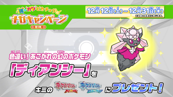 Lors de cette dernière, ce Diancie ★ avait été distribué en première partie via les Nintendo Zone dans les Pokémon Center, les magasins Pokémon participants et le magasin "Hokuriku Oyabe" du 12 décembre au 31 décembre 2015.