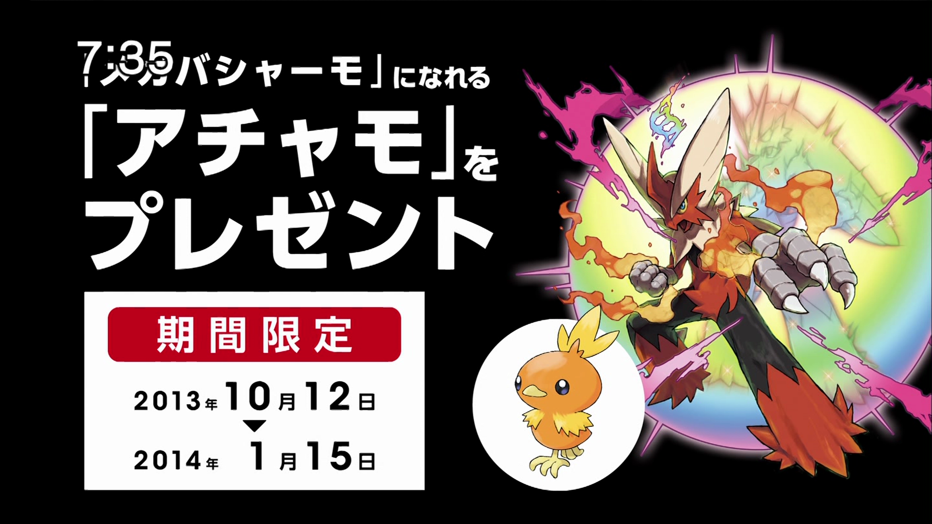 Il pouvait être obtenu dans Pokémon X et Y via le Nintendo Network et via Spotpass, du 12 octobre 2013 au 15 janvier 2014, dans toutes les contrées du monde.