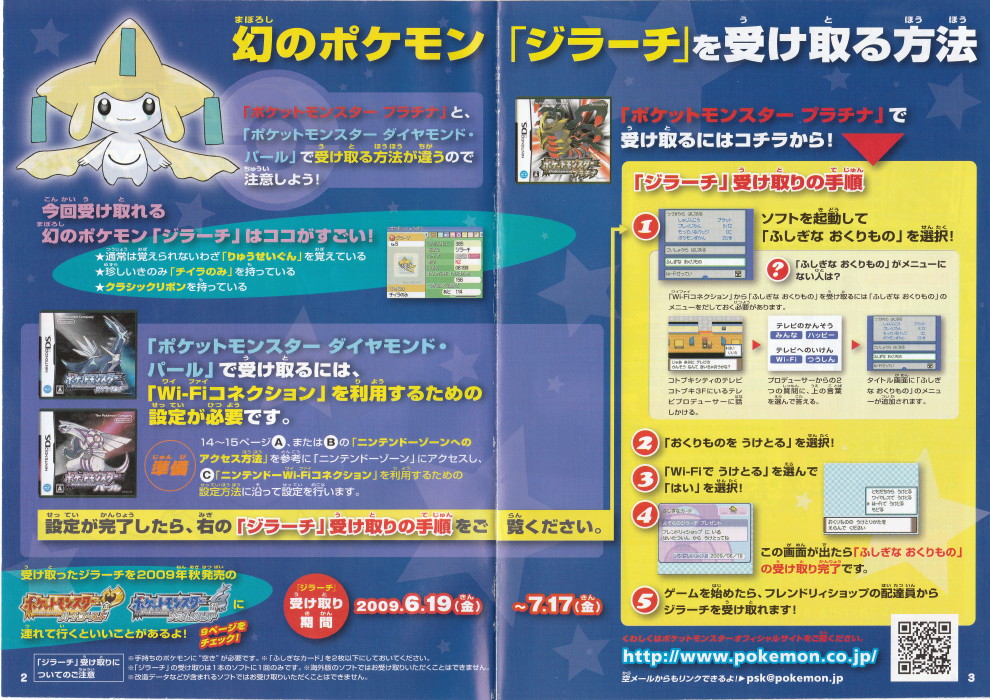 Ce Jirachi a été distribué dans les zones Nintendo, dans les restaurants McDonald et via Wi-Fi.