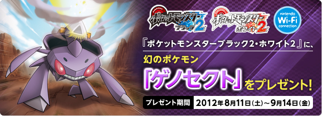 À l'occasion de sa révélation officielle, ce Genesect a été distribué dans le monde en Wi-Fi, sur Pokémon Noir 2 et Blanc 2 uniquement.