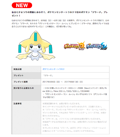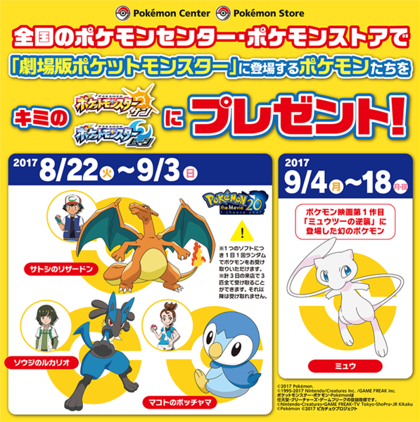 Ces Pokémon ont été distribués via le sans-fil local dans les Pokémon Center et les magasins Pokémon participants au Japon.