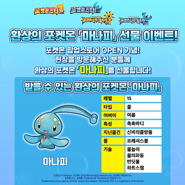 Il a été distribué pour commémorer l'ouverture d'un magasin Pop-Up Pokémon en Corée.