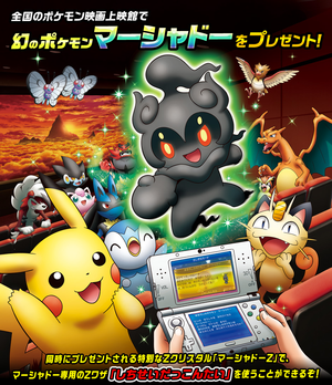 Ce Marshadow a été distribué dans les cinémas au Japon via le sans-fil local lors de la diffusion du 20ème film Pokémon du 15 juillet au 30 septembre 2017.