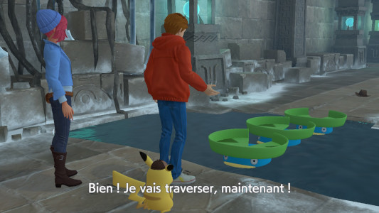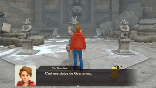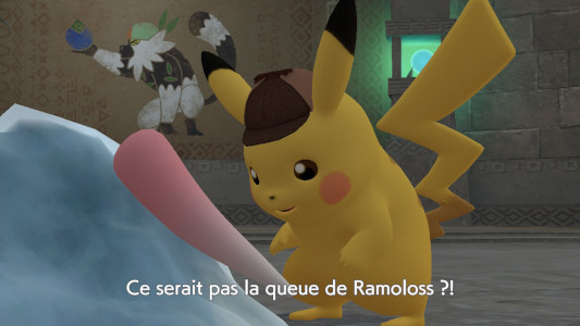 Tim et Pikachu ont identifié le vrai coupable du vol, mais Nigosier engloutit le joyau et s'envole avec. Pensant qu'ils retrouveront peut-être Harry s'ils en savent plus sur ce joyau, les détectives se rendent aux Ruines du Sud afin d'interroger le professeur Gordon.