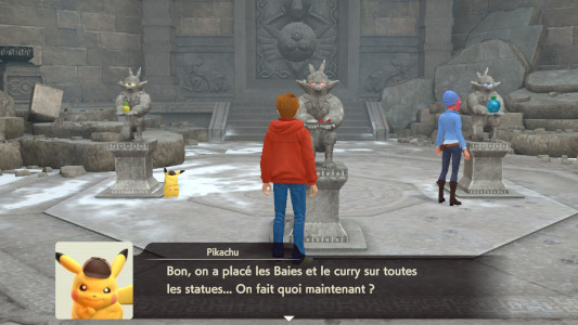 "Quelle est cette Baie jaune qu'il faut placer sur la statue de gauche ?", répondez "Une Baie Jouca jaune et sucrée".
