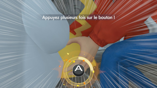 Pikachu se met donc à attirer Darumacho avec une petite danse et en agitant la queue de Ramoloss avec une série de QTE où il suffit d'appuyer sur A au bon timing.