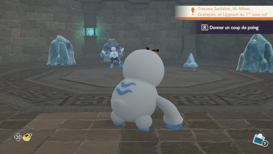 M. Mime et Grelaçon sont derrière le mur de glace à droite.