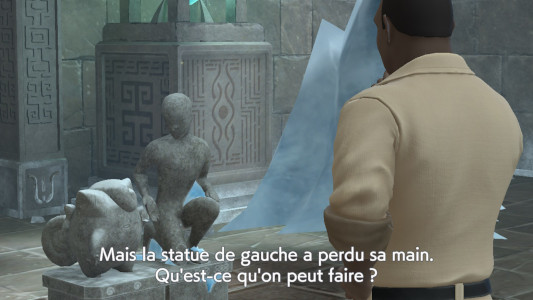 "Que faire maintenant qu'on a déplacé les statues ?" → "Reproduire la main manquante pour les connecter".