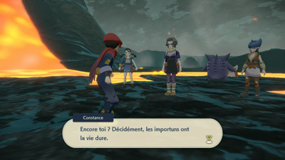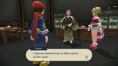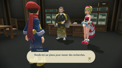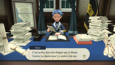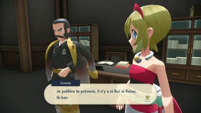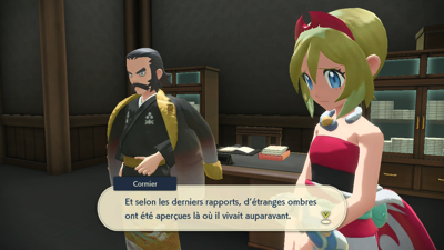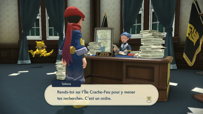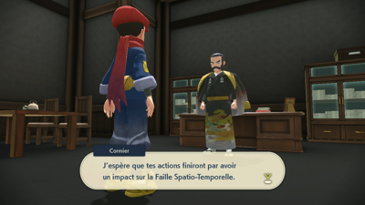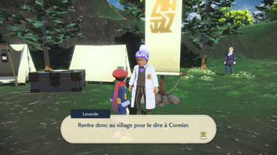 Quant à vous, il est temps d'aller faire votre rapport au Professeur Lavande et au dirigeant Cormier. Mais avant cela, vous êtes interpellé par Percupio qui est encore une fois impressionné que vous ayez apaisé un autre Pokémon monarque, malgré le fait qu'on ne sache toujours pas ce qui les met réellement dans cet état...