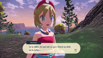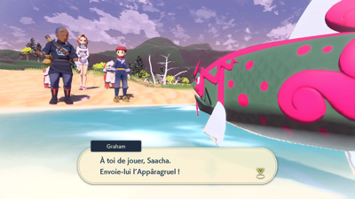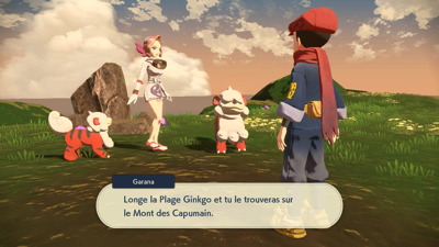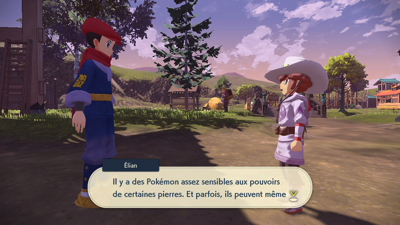 Alors que vous vous dirigez vers la sortie du village, Élian vous rattrape pour vous informer que Garana est la Gardienne de l'île et que des Pokémon sensibles à certaines pierres peuvent y être capturés.