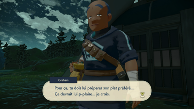 Une fois devant la maison de Graham, ce dernier se présente à vous et vous informe que vous devrez préparer le plat préféré de Paragruel pour qu'il reconnaisse votre valeur.