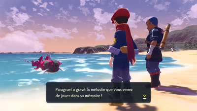 Sur la plage, le Gardien vous attendait et est rejoint par Garana qui souhaite, elle aussi, assister à l'invocation de Paragruel. Le gardien du Clan Diamant se met donc à jouer de la Flûte et fait apparaître l'imposant Pokémon.