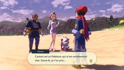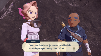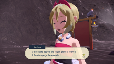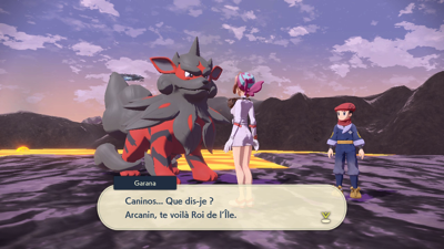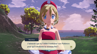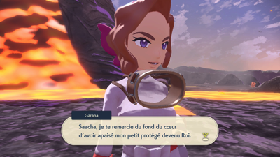 Vaincue, elle vous soigne et vous demande d'aller aider Garana la gardienne à entraîner son Pokémon pour qu'il devienne le nouveau Roi !