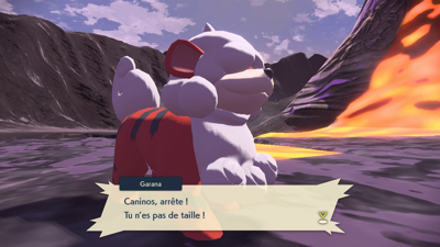 Vaincues, les Détroussoeurs n'en croient pas leurs yeux ! Garana et Graham vous rejoignent accompagnés du Caninos plus petit qui, en entendant le cri de son père surgir du volcan, évolue !