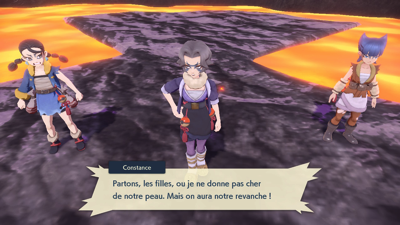 Passez devant Graham jusqu'à atteindre le sommet du volcan, où vous retrouvez les Détroussoeurs, sur le point de vouloir faire évoluer le pauvre petit Caninos contre son gré. Elles vous défient toutes les trois à la suite.