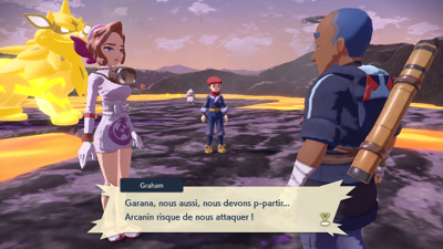 Garana vous supplie de bien vouloir aller sauver son Pokémon... Il va donc vous falloir vous mettre en route et avec l'aide de Graham, faire échouer le plan du gang de voleuses.