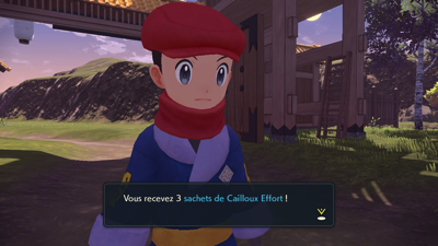 Il vous remet aussi 2 Pierres Effort et 3 sachets de Cailloux Effort (pensez aussi à la Compagnie Gingko qui vend parfois des lots de pierres pour vous aider à faire évoluer certains Pokémon).