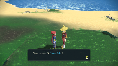 Vous allez devoir descendre le chemin en face de vous et grimper sur la colline située sur votre gauche. Mais avant cela, vous pouvez un peu explorer ce nouveau lieu et capturer les Pokémon qui s'y trouvent. Un membre du Corps de la Défense vous remet 3 Plume Balls si vous lui parlez.
