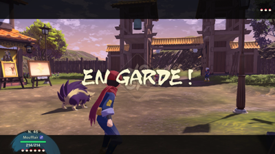 Après avoir répondu à sa série de questions quant à vos intentions envers le Pokémon qu'il protège, il veut s'assurer que vous avez ce qu'il faut pour lui tenir tête. En garde !