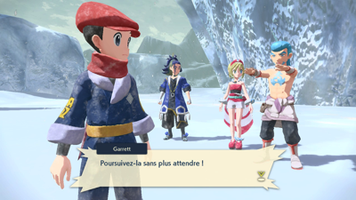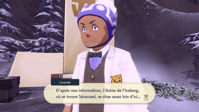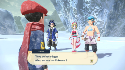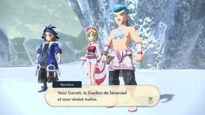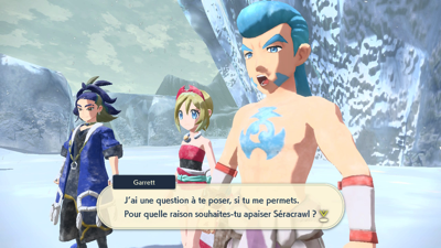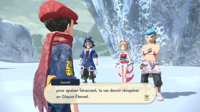 Sur le chemin, vous rencontrez de très nombreux Pokémon de type Glace (des Boules de Neige sont également obtenables dans les petits talus, ainsi que des Raids des Plages). Une fois arrivé à destination, vous faites la connaissance de Garrett, le Gardien de Séracrawl (et du Clan Perle).