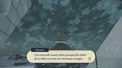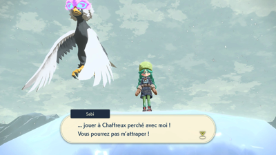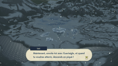 Allez lui parler une première fois, en montant sur le promontoire de glace où elle est perchée : pour pouvoir obtenir la dernière monture qu'il vous manque, vous allez devoir réussir à l'attraper.