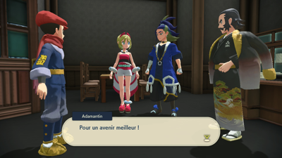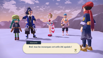 Bien que Garrett n'en croie pas ses yeux, Adamantin vous rejoint et vous félicite pour avoir réussi à apaiser tous les Pokémon Monarques !