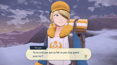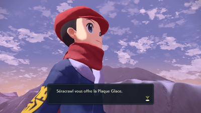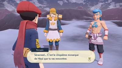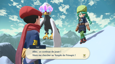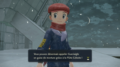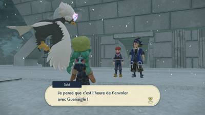 Après une petite discussion, il est temps de vous envoler avec Gueriaigle de Hisui pour aller récupérer le Glaçon Éternel sur le glacier.