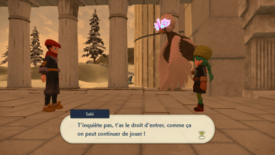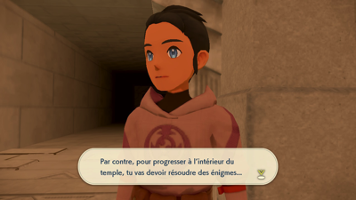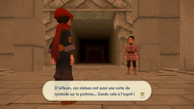Une fois sur les lieux, elle vous attend à l'intérieur et le gardien à l'entrée vous informe que vous devrez résoudre des énigmes (en suivant le regard des statues).