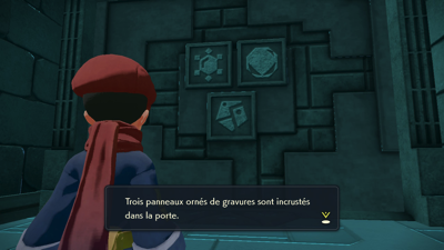 Touchez le panneau roche, acier puis glace pour résoudre l'énigme et débloquer le passage.