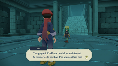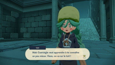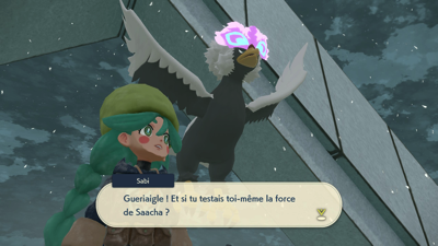 Vaincue, Sabi est vraiment impressionnée ! Elle vous attend sur le toit. Gueriaigle souhaite tester votre force et vous défie en combat !