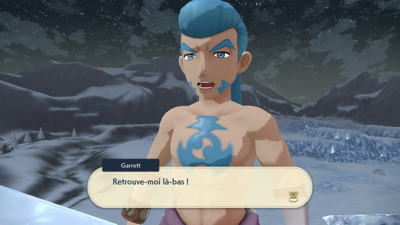 Arrivé au Bivouac des Neiges, le Professeur vous met en garde et vous donne quelques informations sur l'Arène de l'Iceberg. Les chefs des clans arrivent et, après une petite discussion, vous donnent directement rendez-vous près du glacier, pour rencontrer un certain Garrett, membre du Clan Perle.