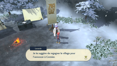 Il est temps d'aller voir le dirigeant Cormier pour l'en informer ! N'oubliez pas de récupérer deux nouvelles missions secondaires avant de repartir au village.