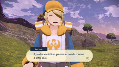 Après avoir jeté un oeil à l'inscription sur l'une d'entre elles et avoir bien fait la relation avec Arceus, Percupio souhaite que vous finissiez de toutes les obtenir et vous donne rendez-vous au Bocage Agité (pour le moment, vous en possédez 10).