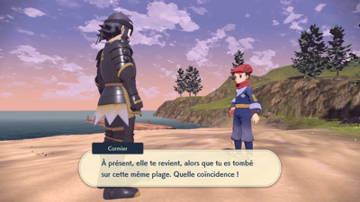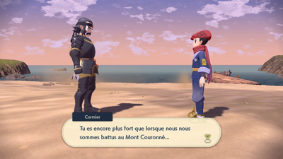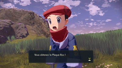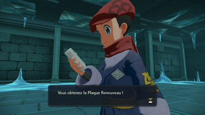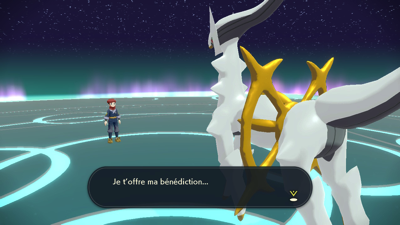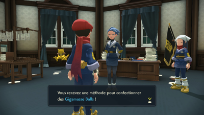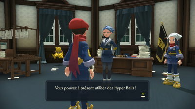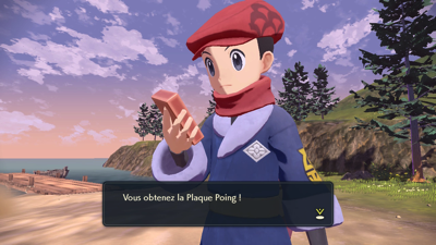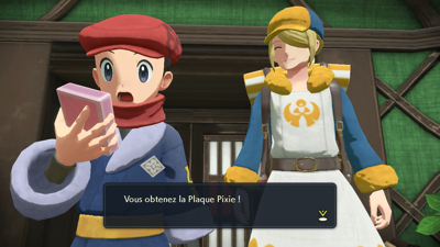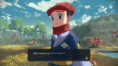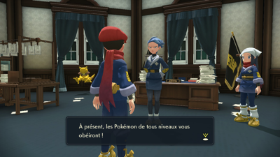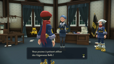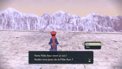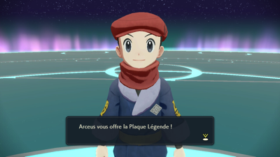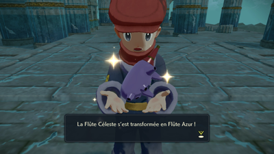 Note : C'est à ce moment que vous pouvez obtenir la Flûte Azur dans votre jeu Pokémon Diamant Étincelant ou Perle Scintillante (dans votre chambre à Bonaugure) si vous possédez le même profil de sauvegarde et pour Légendes Pokémon : Arceus et pour Pokémon Diamant Étincelant et Perle Scintillante. Elle vous permet de rencontrer Arceus au sommet du Mont Couronné !