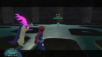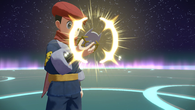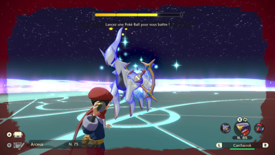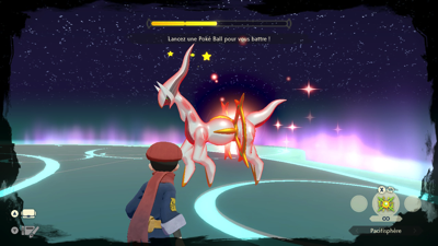 Pour déclencher le combat, vous devez d'abord lui enlever son bouclier (qui lui permet de brouiller vos sens) en le touchant avec l'un de vos Pokémon ou une Poké Ball (pensez aux Plume Balls).