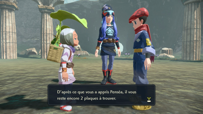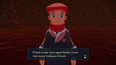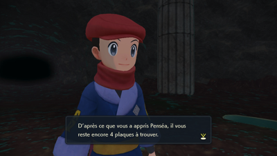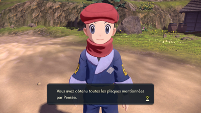 Une fois toutes récupérées, Penséa vous souhaite bon courage et Percupio, qui va continuer de creuser de son côté pour pouvoir faire un lien avec les messages des plaques et ainsi rencontrer Arceus, vous incite à visiter les lieux évoqués par Penséa pour obtenir les plaques manquantes !