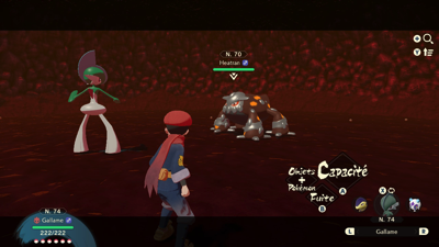 Sauvegardez avant d'entrer dans la grotte. À l'intérieur, le Pokémon légendaire volcanique nommé Heatran vous attend de pied ferme ! Allez lui montrer votre détermination en l'affrontant (en le capturant) !