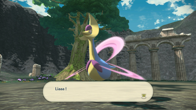 À l'Arène de la Lune, Camille et Lagéna vous accueillent et vous parlent du Pokémon légendaire lunaire nommé Cresselia (pensez à sauvegarder si besoin est). En effet, cette dernière a élu l'Arène comme son nouveau domicile : Camille vous demande de la déloger en la capturant et tout en récupérant l'une des Plumes Lune !