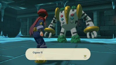 Une fois arrivé au bout du sous-sol, vous apercevrez le Pokémon colosse au fond de la salle : il s'agit de Regigigas. Sauvegardez et entamez le combat en vous en approchant !