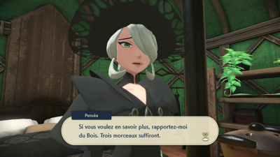 De retour au Hameau Oublié, Penséa souhaite que vous lui rapportiez 3 morceaux de Bois pour qu'elle vous en dise un peu plus.