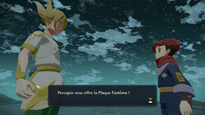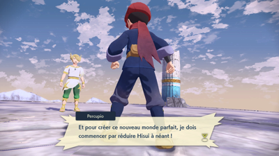 De retour au sommet du Temple de Sinnoh, Percupio vous avoue ses véritables intentions.