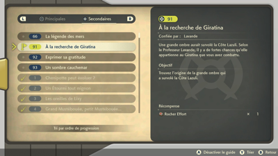 De retour à Rusti-Cité, le Professeur Lavande et Oscar vous interpellent pour vous signaler qu'une ombre (Giratina) a été aperçue en train de survoler la Côte Lazuli... avant de disparaître.