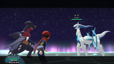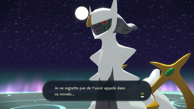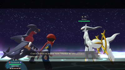 De retour au Temple de Sinnoh, vous possédez désormais le Pokémon Légendaire Arceus ! En utilisant une des plaques de votre sac, vous pouvez lui mettre le type que vous souhaitez. Mais comme d'habitude, il vous reste encore pas mal de choses à faire dans le jeu, bien que la trame principale soit désormais achevée.