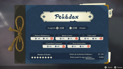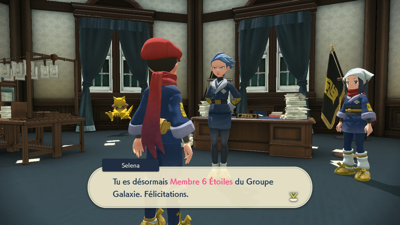 Pensez aussi à faire un tour au Siège Galaxie et à parler à Selena pour qu'elle vous remette une étoile supplémentaire si vous avez accompli suffisamment de tâches Pokédex : vous êtes désormais un Membre 8 Étoiles du Groupe Galaxie !