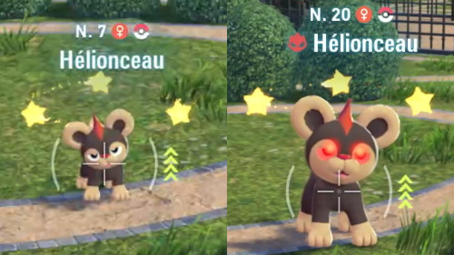 | Timide | Ces Pokémon commencent à s'enfuir dès qu'ils vous repèrent. Après avoir fui une certaine distance, ils disparaissent de la carte. | |