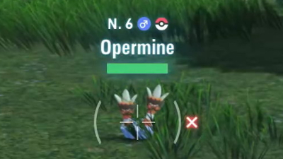 Lorsque vous visez avec ZL, vous pouvez voir au-dessus du Pokémon des informations : son niveau, son genre et une éventuelle icône Poké Ball indiquant que vous avez déjà enregistré un membre de son espèce dans le Pokédex. Et juste en-dessous de ces informations, une éventuelle icône indiquant son statut de baron et son nom.