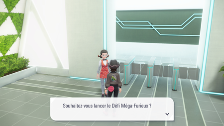 Le Défi Méga-Furieux est le challenge ultime de Méga Dimension, qui teste vos talents dans un marathon contre l'ensemble des Pokémon Méga-Ferox du jeu !Fonctionnement